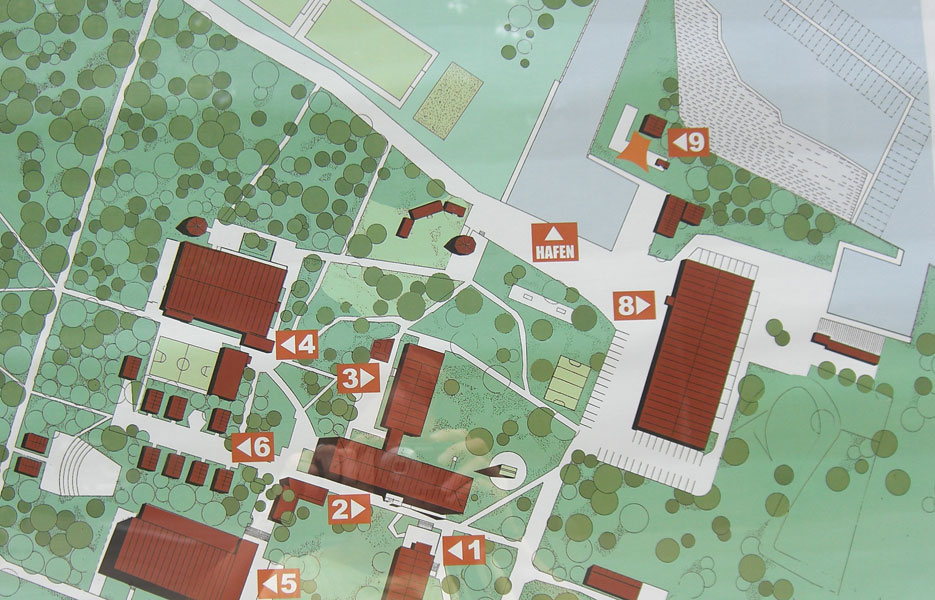 Dodatkowe udogodnienia obejmują: plażę, przystań z łodziami i małym kioskiem, kajaki, deski SUP oraz inne sprzęty do sportów wodnych, halę do jazdy na rolkach, salę gimnastyczną, studio fitness, ściankę wspinaczkową, boisko do koszykówki, boiska do siatkówki plażowej, boisko piłkarskie w oryginalnym rozmiarze ze sztuczną murawą, saunę, stołówkę oraz 10 sal lekcyjnych do nauki języka niemieckiego